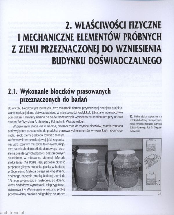 2. Właściwości fizyczne i mechaniczne elementów próbnych z ziemi przeznaczonej do wzniesienia budynku doświadczalnego