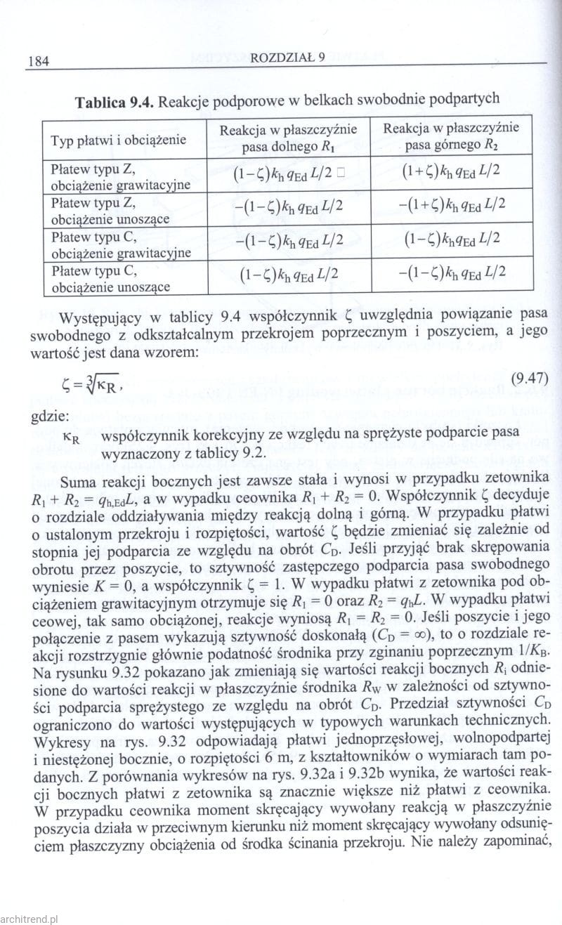 9.6.2. Reakcje boczne płatwi według PN-EN 1993-1-3 183