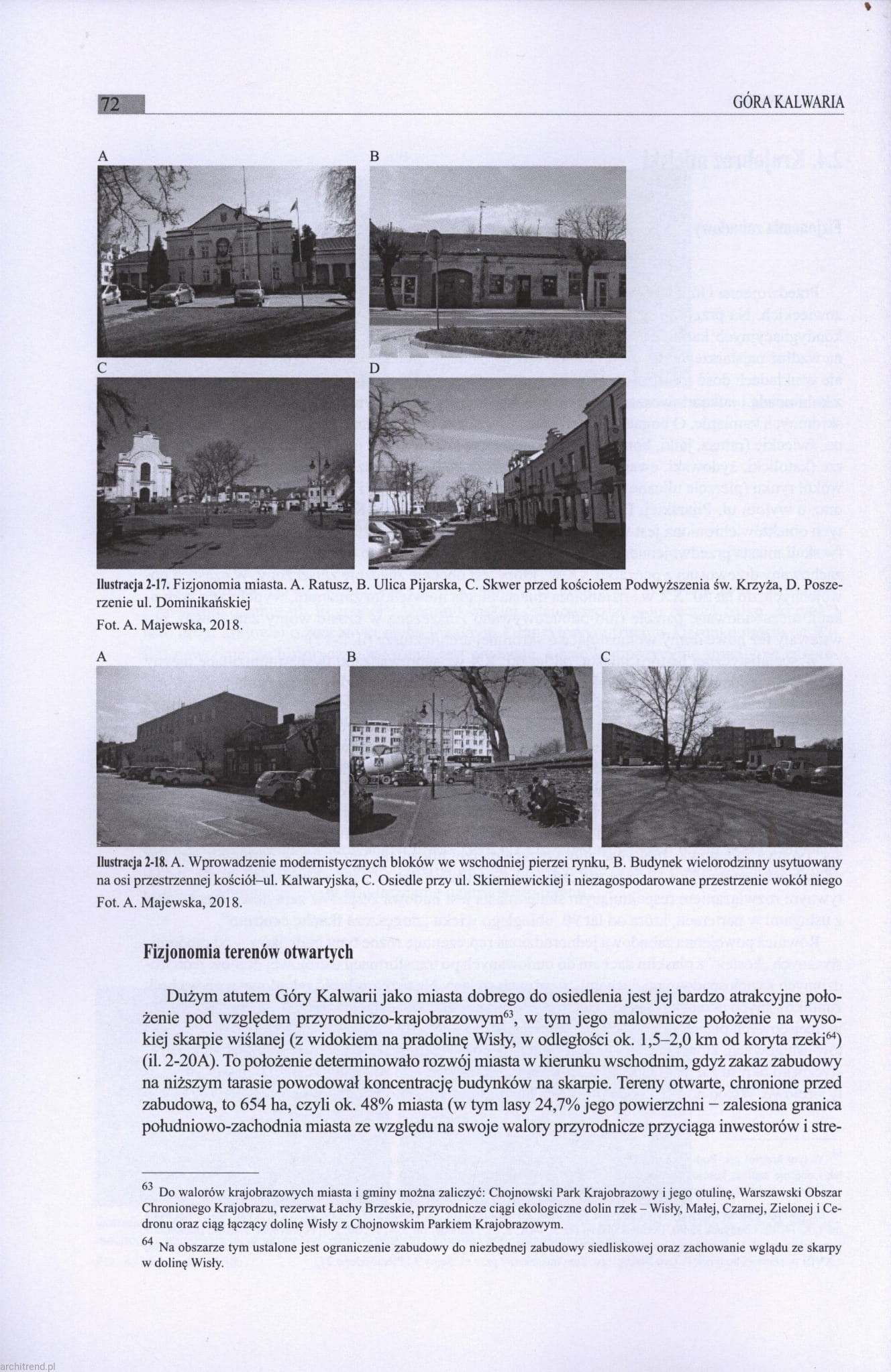 Konflikty przestrzenne i specyficzne problemy rozwojowe małych miast w Polsce, zwłaszcza położonych w strefach podmiejskich, skłoniły autorkę do podjęcia badań. Wiodącym celem naukowym jest analiza kierunków przekształceń, jakie nastąpiły w tych ośrodkach od 1939 roku, a w szczególności przez ostatnie 30 lat (po transformacji ustrojowej). Szczegółowa analiza badanych miast została zamieszczona w pierwszej części monografii, a w prezentowane opracowanie zawiera studium wybranych ośmiu małych miast położonych w strefie podmiejskiej Warszawy: Błonie, Górę Kalwarię, Karczew, Mszczonów, Radzymin, Serock, Tarczyn i Zakroczym. Wszystkie te ośrodki położone są w odległości 20−40 km od Warszawy, przy dawnych traktach handlowych. Cztery z nich mają 4 do 7 tys. mieszkańców, a cztery inne około 10 tysięcy. Są też dziś często zmarginalizowane, a ich liczba ludności (w kilku przypadkach) zmniejszyła się od 1939 roku, co świadczy o ich stagnacji czy nawet upadku. Stanowią jednak świadectwo historycznego rozwoju regionu podwarszawskiego, a ich wartości kulturowe wnoszą wkład do naszego dziedzictwa.