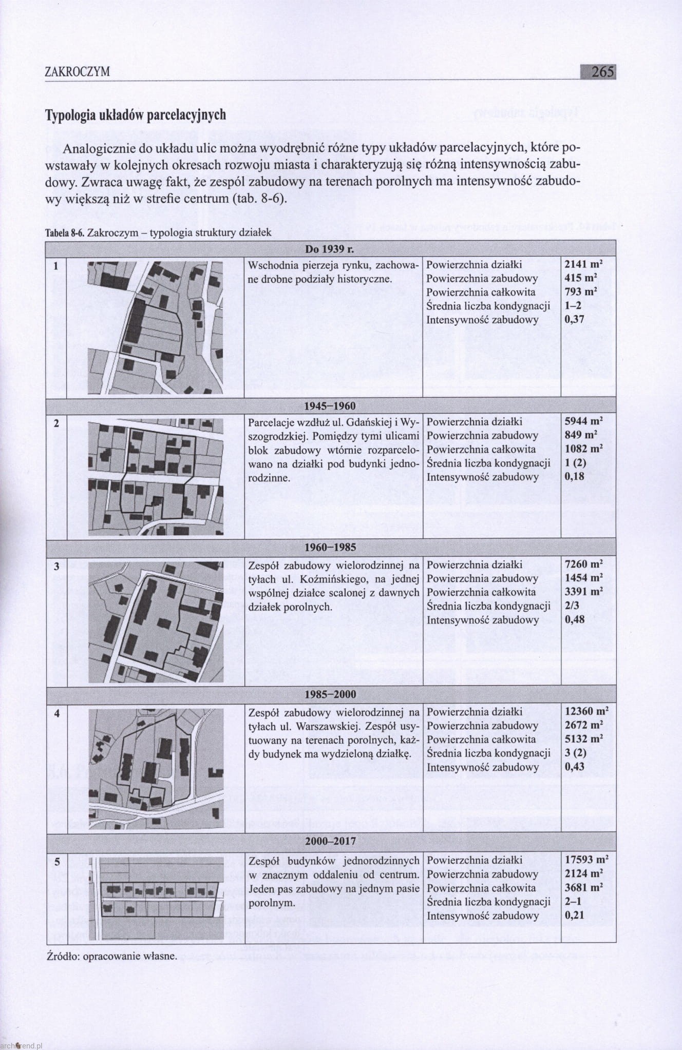 Monografia ma osiem rozdziałów, każdy poświęcony jednemu z badanych miast. Poprzedzone są one wprowadzeniem, zawierającym uzasadnienie tematyki oraz opis celu i metodyki badań. Zakończenie to wnioski końcowe z podsumowaniem diagnozy stanu zagospodarowania.