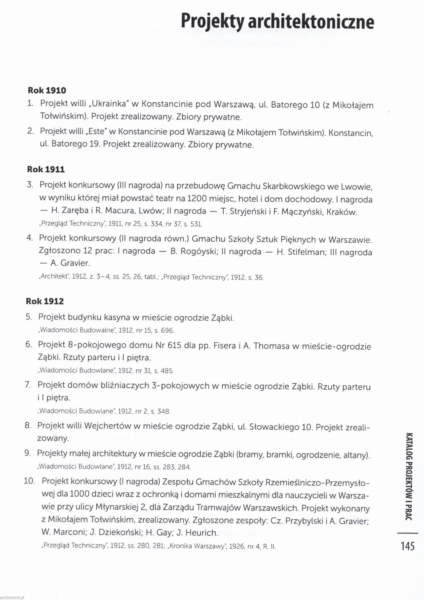 Lata 1915-1918. Prace architektoniczne prowadzone w Warszawskim Kole Architektów 25
